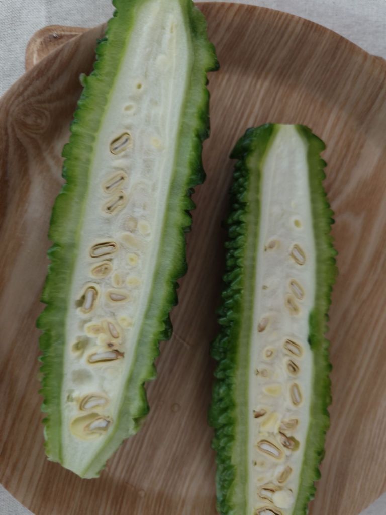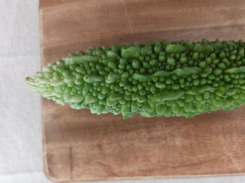 1. ゴーヤは縦半分に切り、ワタを取り、薄切り。